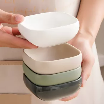 Nordic Minimalist Ceramic Snack Bowl Set with Acacia Wood Tray – 3 Piece